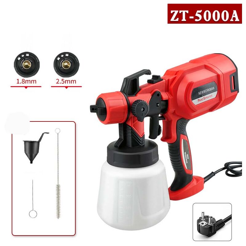L'aiutante compatto per lavori di progettazione e hobbistica con vernici e smalti per superfici di lavoro di piccole e medie dimensioni. Regolazione integrata della quantità di vernice per la regolazione ideale dell'applicazione della vernice. Lavoro flessibile con cappello aria regolabile per getto verticale, orizzontale e rotondo, l'impugnatura morbida garantisce un lavoro comodo e sicuro. Riponibile in modo salvaspazio grazie al dispositivo di sospensione. Pulizia accurata per un uso duraturo: testina di spruzzo rimovibile e inclusa spazzola per la pulizia del tubo montante e ago di pulizia per la pulizia dell'ugello di spruzzatura. Parametri modello plug-in Boutique ZT-5000A: Materiale: PP Tensione nominale: 220 V-240 V Potenza in ingresso nominale: 650 W-850 W Livello di isolamento: posteriore (isolamento a due stadi) Volume contenitore: 800 ml, 900 ml Ugello regolabile:∮1,0 mm, 1,8 mm, 2,5 mm (0,8 mm, 1,2 mm) Pressione sonora: Lpa76,13db(A)Kpa=3db(A) Potenza sonora: Lwa95,24db