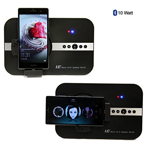 Sistema Hi-Fi micro da 10 Watt per Huawei Ascend P7 P8 P8 Lite. Per Musica Video Youtube Skype immagini e Telefonia, Con Micro USB e Bluetooth e telecomando - altoparlante e docking station - nero
