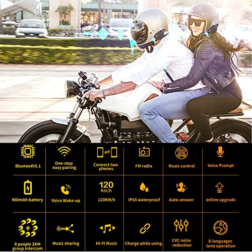 【Connettività più potente/remota, accoppiamento facile in un solo passaggio】: Supporta connessioni concatenate per 2 membri entro 1 km e membri illimitati entro 2 km, supporta un buon interfono a velocità fino a 120 km / h (75 mph), rompe la modalità di rete tradizionale, invece di operazioni di accoppiamento complesse per ottenere l'accoppiamento in un solo passaggio.