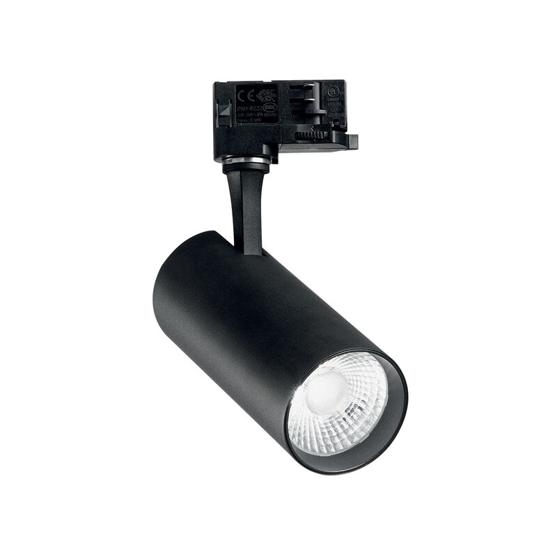 Collezione Fox PROIEZIONI DI LUCE Proiettore cilindrico in alluminio estruso, adatto per installazione su binario trifase. Verniciatura a polveri in bianco o nero, testata girevole 275° e orientabile fino a 90°;