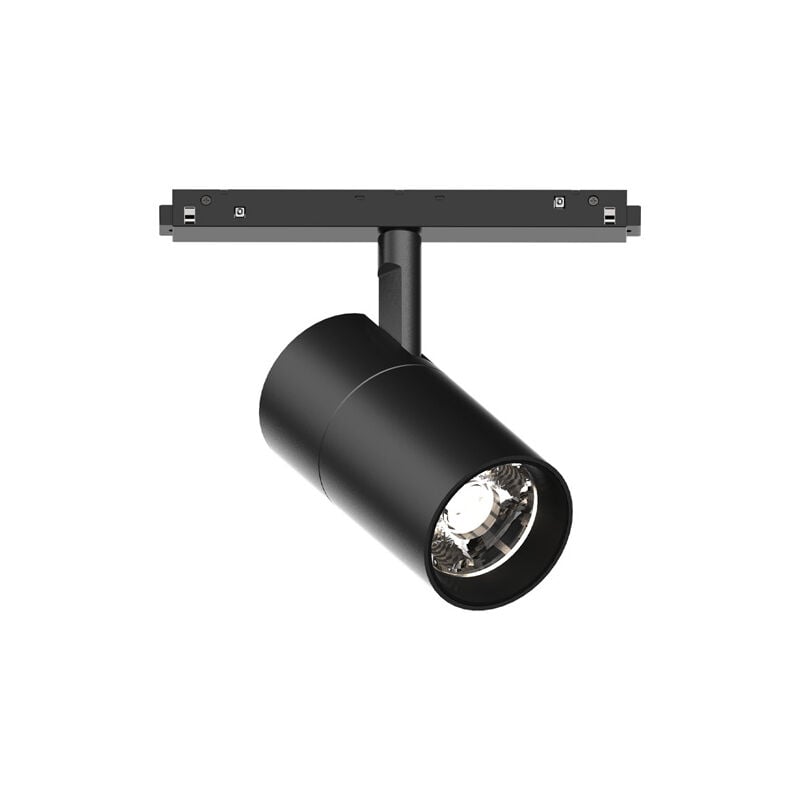 Collezione Ego DIFFONDERE LA LUCE IN BASE ALLE PROPRIE ESIGENZE Faretto orientabile montato su binario per interni con sorgente LED integrata da 26W ed emissione di luce diretta.. Sistema composto da un profilo in alluminio estruso ed elementi di illuminazione a fissaggio magnetico.