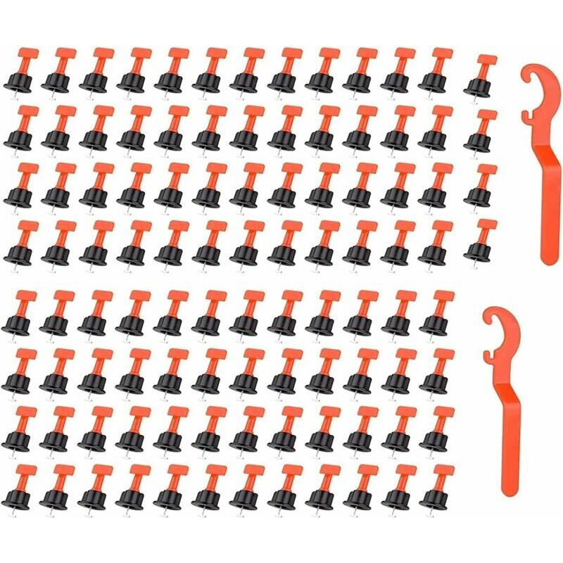 Sistema di livellamento per piastrelle, ottimo strumento fai-da-te per la costruzione di pareti e pavimenti. caratteristiche: - Angoli riutilizzabili. - Impedire alle piastrelle di muoversi durante l'indurimento. - Riduce la necessità di levigatura e lucidatura. -Sensibilità tra le piastrelle ed evita irregolarità. - Migliora la velocità di installazione delle tessere e riduce l'affaticamento/stress dell'editor. specifica: Nome: sistema di livellamento per piastrelle Colore: arancione+nero -Materiale: acciaio inossidabile PP+430 Quantità imballo: 100 pezzi -Peso: 1100 g istruzioni: 1) Posizionare il primo pezzo di piastrella di ceramica con uno spessore del giunto di almeno 2 mm. e vicino alla seconda ceramica;
