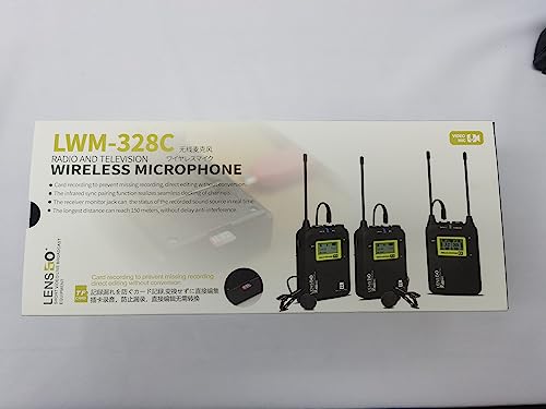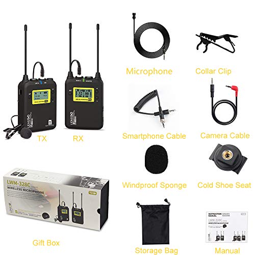 Sistema Microfonico Lavalier Wireless, LENSGO LWM-328C Mic Professionale Wireless Omnidirezionale UHF 99-canali con 2 Trasmettitore e 1 Ricevitore per Smartphone Fotocamera Canon Nikon DSLR e Altro