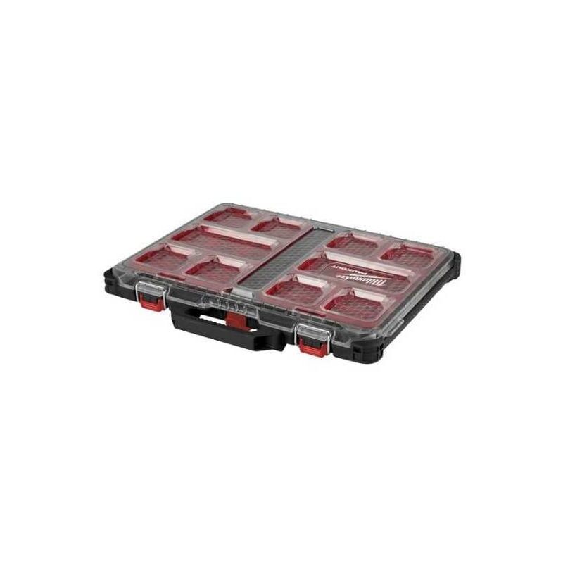 Organizer adatto al Sistema modulare PACKOUT™. L'interno dispone di 2 contenitori grandi 8 contenitori piccoli. Tutti i contenitori sono removibili Tutti i contenitori contengono i divisori. Scomparti sigillati. Materiale: Polimero Grado di protezione: IP65 Dimensioni esterno: 64x500x414 Dimensioni interne: 46x457x305