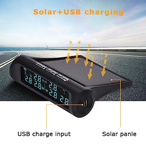 Sistema di Monitoraggio della Pressione dei Pneumatici con 6 Sensori TPMS Esterni, Display LCD, Allarme di Pressione Eccessiva e Temperatura, Monitor Impermeabile per Camper, SUV