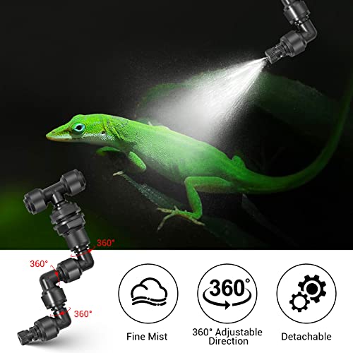 【Ugelli rotanti a 360°】Questo sistema di nebulizzazione per rettili è costituito da un design a doppia testa di nebulizzazione. Tutti e 3 gli angoli degli spruzzatori supportano una rotazione di 360 gradi, più comoda da usare. Regola l'angolo di spruzzatura della testa per rendere l'umidità completa nei terrari per rettili, spruzzando in modo omnidirezionale per soddisfare la domanda a tutto tondo.