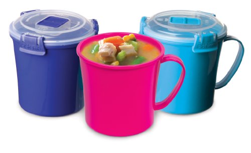 Sistema Tazze per zuppa da microonde, plastica, Colori Assortiti, Confezione da 3