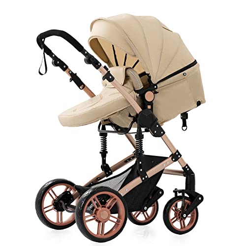 3 in 1 Sistemi Modulari Carrozzine 3 in 1 Passeggino Girello Passeggino Alto Paesaggio Passeggini Pieghevoli Carrello per Bambini Carrozzina per Bambini 0-36 Mesi (588 Khaki)