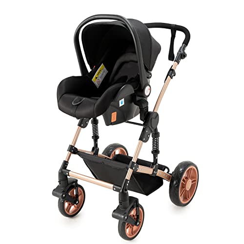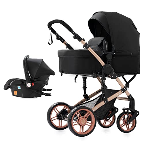 3 in 1 Sistemi Modulari Carrozzine 3 in 1 Passeggino Girello Passeggino Alto Paesaggio Passeggini Pieghevoli Carrello per Bambini Carrozzina per Bambini 0-36 Mesi (588 Black)