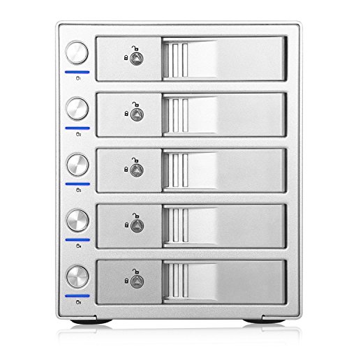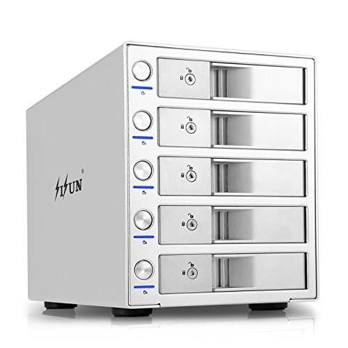 SISUN ® Case Esterno In Alluminio per Hard Disk Sata da 3,5" con USB 3.0, 5 bay Enclosure Fino a 10TB x5=50TB Capacitá (5x 3.5" HDD / USB3.0-Argento)