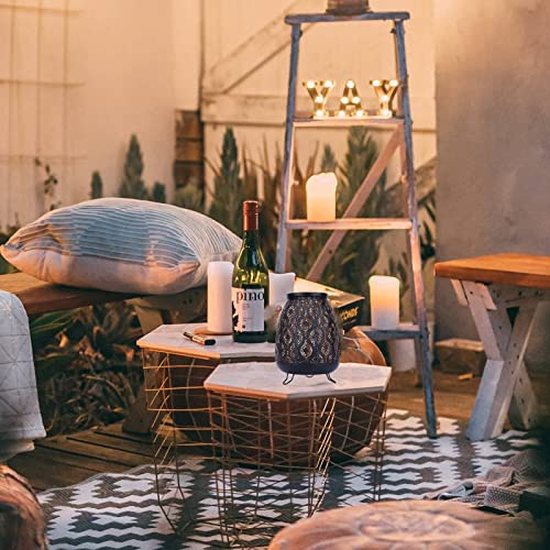 【Uso】:Questa lanterna per candela può essere utilizzata all'interno e all'esterno, come decorazione per tavola del soggiorno, aggiungendo un'atmosfera retrò. Puoi anche aggiungere un'atmosfera romantica quando ti riposi in giardino o sul balcone.