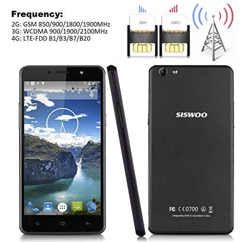 SISWOO C55 5.5" pollice 4G Smartphone Android 5.1 MT6753 Octa Cores 1.3GHz RAM 2GB + 16GB ROM Dual Camera 13M+5M Dual SIM Cellulare Wifi OTG GPS, Nero