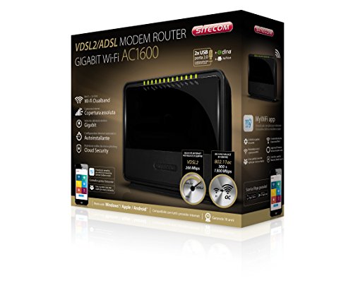 Sitecom Wlm-7600 Modem Router VDSL2+/ADSL AC1600 Wi-Fi Gigabit, Dualband, Nero/Antracite