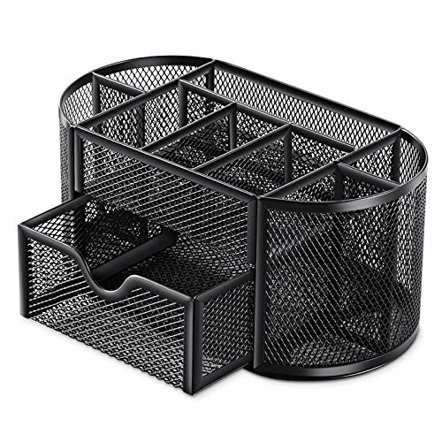 SITHON Organizer da Scrivania in Rete, Portaoggetti da Scrivania con Cassetto, Multifunzionale Organizzatore Portapenne da Cancelleria, Penna, Pennarello, Carta a Ufficio Scuola Casa, (Nero)
