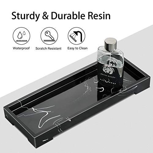 SITHON Vassoio da Bagno in Resina, Rettangolare Portaoggetti Organizzatore per Tessuti Candele Sapone Shampoo Profumi Asciugamano Cosmetici Gioielli, (Marmo Nero)