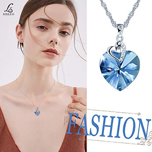 SixLuo, collana da donna in argento Sterling 925, con ciondolo a forma di cuore con cristalli Swarovski, regalo di Natale