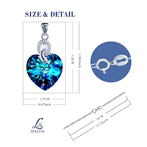 Sixluo collane donna vetro blu amore cuore 925 argento Sterling cuore del oceano ciondolo fatto con SWAROVSKI elemento