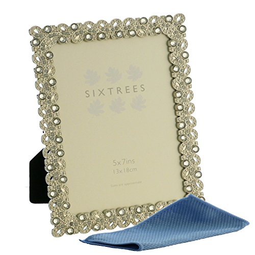 Sixtrees, cornice porta foto, elegante cornice portafoto in metallo con perle e cristalli, effetto anticato, stile vintage e shabby chic;