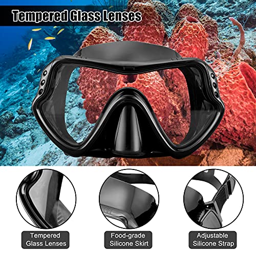SixYard Set di boccaglio asciutto per donne e uomini, maschera subacquea in vetro temperato anti-appannamento, occhiali nuoto panoramici, facile respirazione attrezzatura snorkeling per adulti (nero)