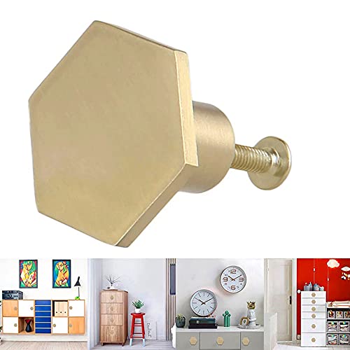 SIYI-XIU 2 Pizze Manopola in Solido Ottone Esagonale Pomelli 30 x 21mm Pomelli Oro con Viti per Mobili Legno Cassetti Cucina Armadio Porta