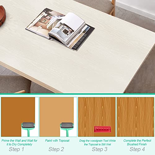 ✔【Effetto venatura del legno facile da creare】: il rullo effetto venatura del legno ha linee chiare ed effetti realistici, che possono aggiungere un'atmosfera vivace alle tue pareti. Durante l'utilizzo, è sufficiente adescare il muro e attendere che si asciughi completamente;
