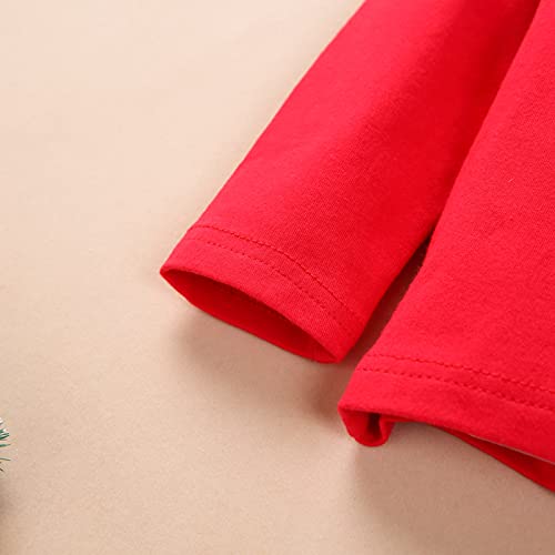 Siyova Abito Bambina Natale Completo Bimba Natale 3PCS Top/Pagliaccetto con Lettera di Renna Volant a Maniche Lunghe + Gonna con Bretelle + Set di Fasce Capelli Streetwear (Rosso, 2-3Anni)