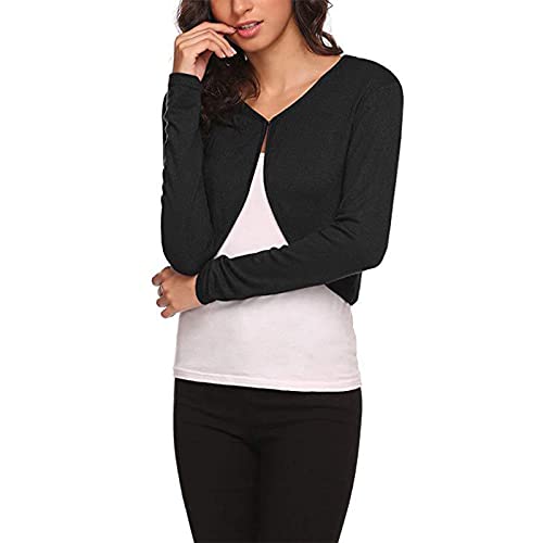 Siyova Cardigan Donna Girocollo Manica Lunga Tinta Unita Cardigan Elegante Lavorato a Maglia Coprispalle Corta con Frontale Aperto da Donna Top Magliette Donna Autunno Primavera (Nero, M)