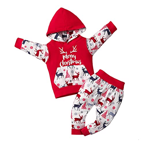 Siyova Completi Natalizi per Neonato Bambino 2 Pezzi Felpa con Stampa di Cervo a Maniche Lunghe+Pantaloni Vestiti Bimbo Rossi di Natale Tuta Neonato Invernale (Rosso, 6-12 Mesi)