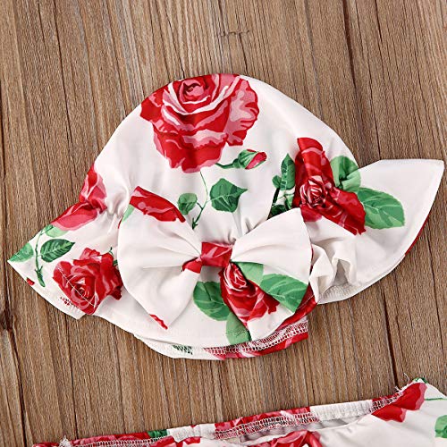 Siyova Costume da Bagno Bambina Costumi Senza Maniche St Cappello con Pantaloncini Corti Bowknot 3 Pezzi Completo Bambina Neonata Vestito Mare Estate Spiaggia Vacanze (Rosso, 0-6mesi)