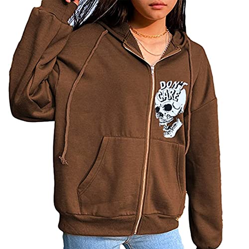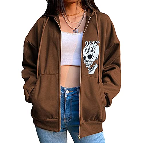 Siyova Felpa Cappuccio Donna Oversizea Maniche Lunghe con Zip Stampa Scheletro Pullover Vintage Graphic Portrait Mode Felpa da Donna con Cappuccio 90 Girl GiaccaAutunno (Teschio Marrone, S)