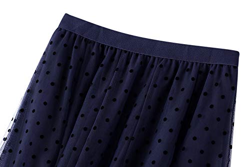 Siyova Gonna da Donna Tulle Mode Casual Elegante Cielo Stellato Trapezio Gonna da Donna Tutu in Rete Longuette Vita Alta Punto d'onda Gonna Party Streetwear (Blu Navy, Taglia Unica)