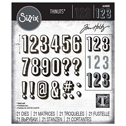 Sizzix Die 21PK Alphanumeric Shadow Numbers Fustelle Thinlits 21 pz 664808 Set Alfanumerico in Rilievo by Tim Holtz, Taglia unica