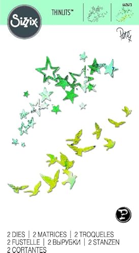Sizzix 662673 Fustelle Thinlits-Uccelli e Stelle di Pete Hughes, Acciaio, Argento, 26x13x0.2 cm