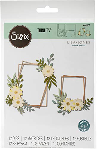 Sizzix 664377 Set di Fustelle Thinlits, Cornice Geo Floreale di Lisa Jones, Multicolore, Taglia unica, 12 pezzi