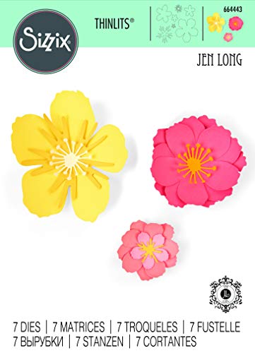 Sizzix Set di Fustelle Thinlits 7 pz 664443, Germoglio Floreale di Jen Long, Multicolore, Taglia unica