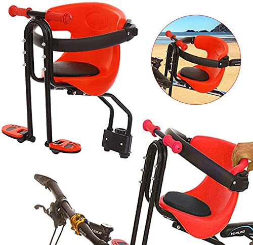 SJASD Leggero in Seggiolino per Bici per Bambini,Seggiolino Bicicletta Anteriore con Staccabile Braccioli e Regolabile Pedale per Bambino 0.6-4 Anni (Max 50KG),Rosso