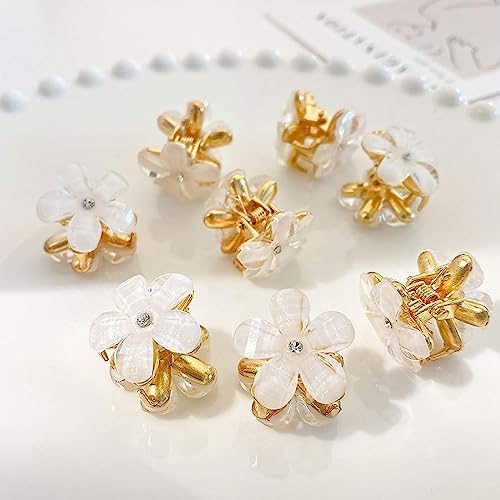 SJBAUTYO 20 Pcs Mini Tornante per Capelli Diamantati,Fermagli per Capelli a Fiore,Mini Fermagli per Capelli Dolci per Feste,Matrimoni (Bianco & Rosa)