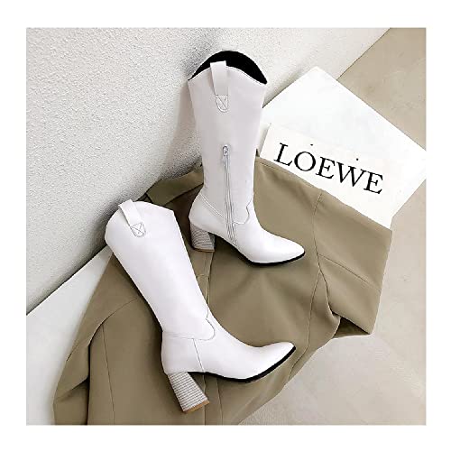 SJDFK Autunno e Inverno Natale Stivali da Donna Moda Punta a Punta Tinta Unita Cerniera Laterale Casual Spesso Tacco Alto da Donna Stivali al Ginocchio Scarpe da Donna,Beige-37