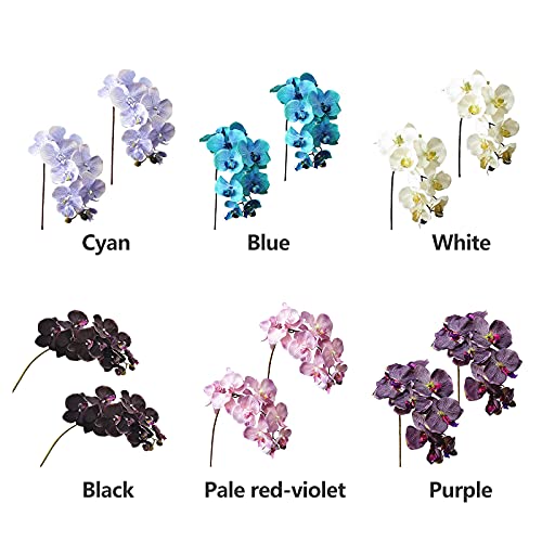 SJDWDX - Fiori artificiali di orchidea falaenopsi, con rami di orchidea realistica e a stelo lungo per casa, ufficio, decorazione per matrimoni (blu)