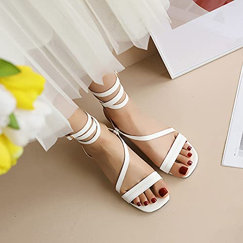 SJJH Sandali casual da donna con cinghie incrociate e tacchi squadrati, bianco, 45 EU