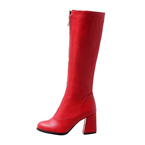 SJJH Stivali alti da donna con cerniera media e tacco robusto, Colore: rosso, 33 EU