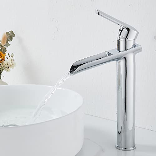 Rubinetto per bagno monoforo - Il rubinetto a cascata fornisce acqua calda e fredda. È dotato di un beccuccio rettangolare extra large con una sola leva per un facile controllo del flusso e della temperatura dell'acqua. È molto adatto per lavabo da appoggio, può essere utilizzato in bagno, bagno, toilette o guardaroba ecc.