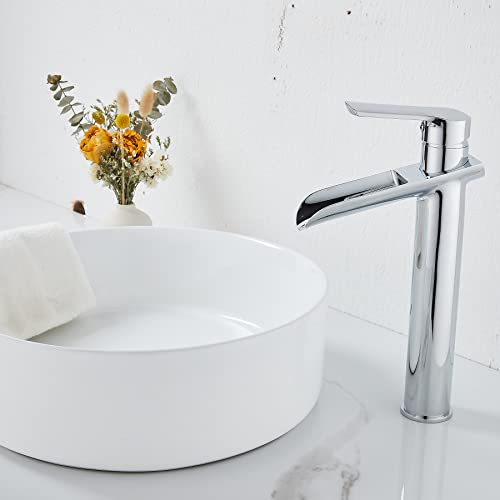 MATERIALI DI QUALITÀ - Il corpo di questo rubinetto da bagno alto per lavabo è realizzato in ottone altamente resistente con solida cromatura