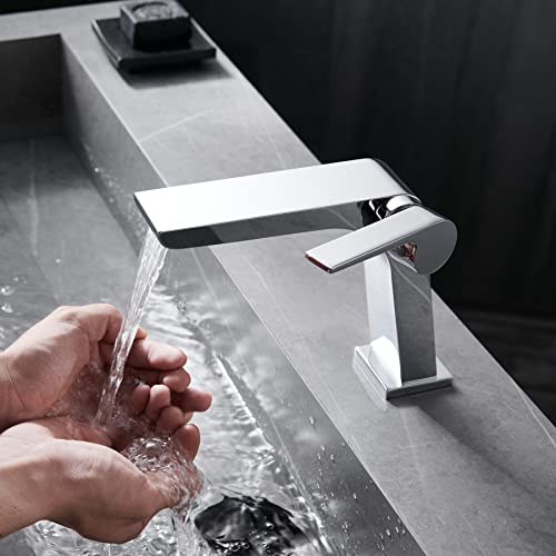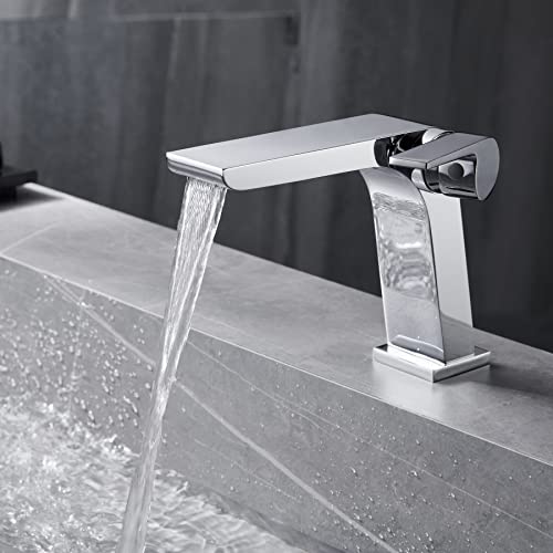 SJQKA Rubinetto Bagno Lavabo Cascata, Bagno Cascata Rubinetto Lavabo E Fredda E Calda Regolabile Miscelatore Da Lavandino (Cromatura)