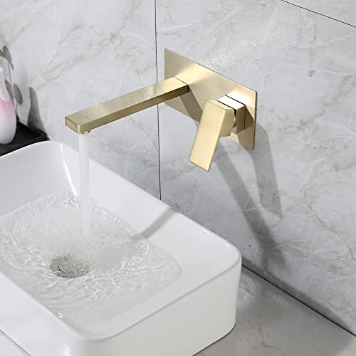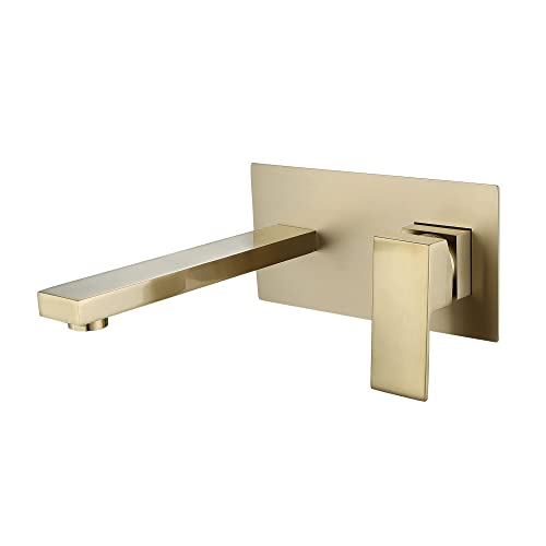 SJQKA-Rubinetto Miscelatore Lavabo A Parete Oro Spazzolato Miscelatore Bagno Muro Ottone Rubinetto Per Lavabo Da Incasso Per Lavabo Da Bagno