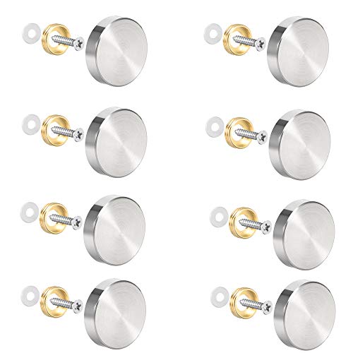 SJUNJIE 12 Pezzi Chiodi a Specchio In Acciao Inox 25 mm con Tappi Decorativi Specchio Decorativo Viti Per Fissaggio per Specchio Tavoli da tè Armadi Cornici(Argento)