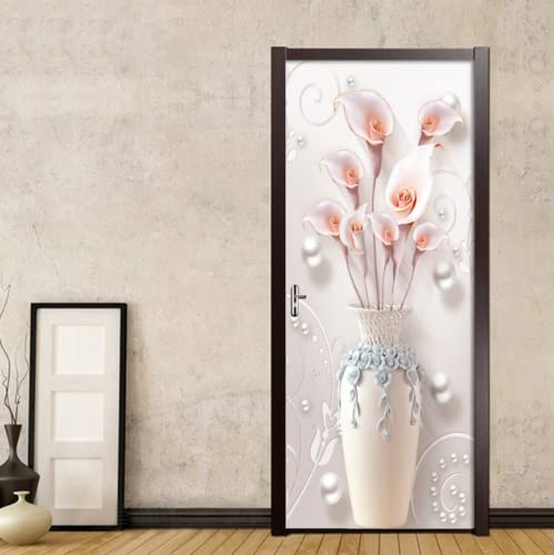 SJYHNB 3D Porta Murale 95x215cm Calla rosa PVC autoadesivo buccia e bastone Murales porte stickers porta, adesivi per porte interne bagno della cucina