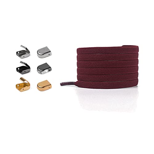 Sjzwt Elastic Lacci delle scarpe da tennis Outdoor Leisure rapida di sicurezza piatto merletto, Rosso scuro, Taglia unica