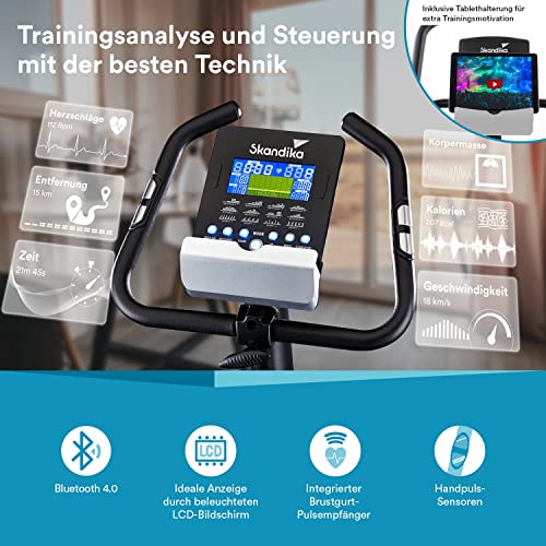 Skandika Atlantis - Ergometro/Cyclette - Max. 150 kg - 12 Programmi - Supporto per Il Tablet - Ruote Trasporto