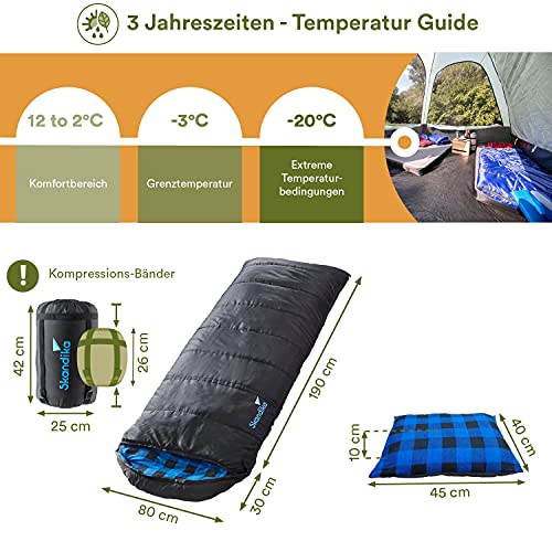 Per temperature comfort fino a circa 2°C e con un range di temperature estreme fino a circa -20°C. Ideale per il campeggio e le escursioni in primavera/estate/autunno e anche come piumone di riserva per i pigiama party. Tutto in un attraente design a colori.